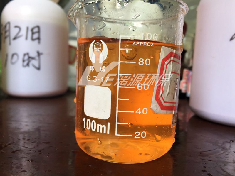 1、原水pH為6.5,顯中性,液體微濁,呈紅色,無(wú)浮油。取100ml原水,加入濃度為百分之五堿溶液調(diào)節(jié)其pH為7-8。